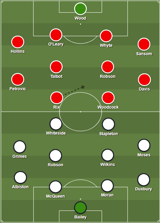 United finished the job by beating Arsenal 2-1 in the second leg. Arsenal were wearing a green away strip for one of the few times in their history. After being outfought at Highbury, they made a conscious effort to improve their give:take ratio. “I think their pride had been stung last week,” said Atkinson after game, “and they made up their mind they were gonna put some physical about.”